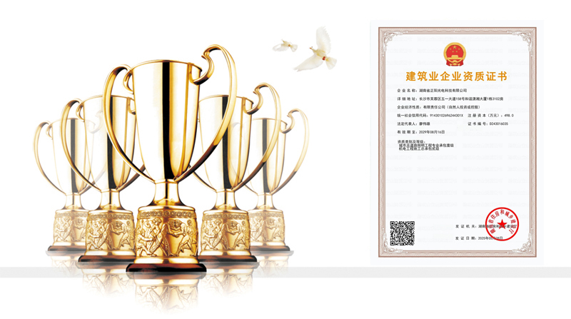 湖南省正陽光電科技有限公司是一家從事亮化工程及大型燈光藝術(shù)的設(shè)計(jì)、制作、安裝和維護(hù)于一體的專業(yè)化公司。公司資質(zhì)齊全、管理嚴(yán)謹(jǐn)、技術(shù)先進(jìn)、實(shí)力雄厚,取得了城市及道路照明工程專業(yè)承包壹級(jí)資質(zhì)、照明工程設(shè)計(jì)專項(xiàng)甲級(jí)資質(zhì)、機(jī)電工程施工總承包貳級(jí)資質(zhì)、施工勞務(wù)等資質(zhì)、國家高新技術(shù)企業(yè)、國家“重質(zhì)量·守誠信”示范企業(yè)。